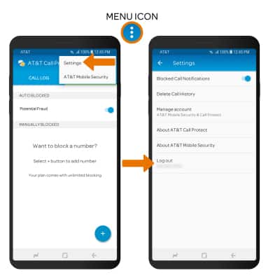 - LOG OUT OF CALL PROTECT: Select the Menu icon, then select Settings. Select Log out.