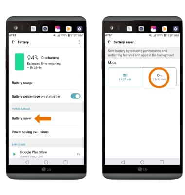 - BATTERY SAVER MODE: From the Battery screen, select Battery saver. Select On to extend battery life.