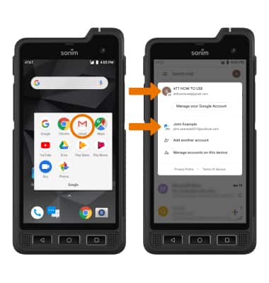 ACCESS EMAIL INBOX: From the home screen, select the Google folder then select the Gmail app. If you have multiple email accounts on the device, select the Account icon then select the desired account.
