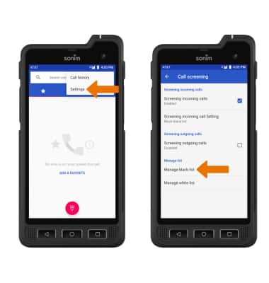 then select Settings > Call screening > Manage black list.