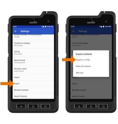5. Navigate to the desired folder, then enter the desired file name. Select SAVE when finished. Your contacts are now backed up to your SD card.