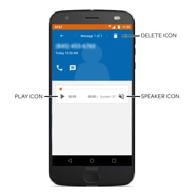 - Select the corresponding icon to play the voicemail, delete the voicemail, or enable/disable the speaker.