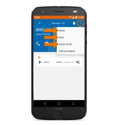 - To share, save, or export a voicemail, select the Menu icon then select the desired option.