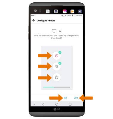 - Follow the on-screen prompts to set up the Power, Mute, and Settings buttons. Select YES or NO to confirm each button's functionality.