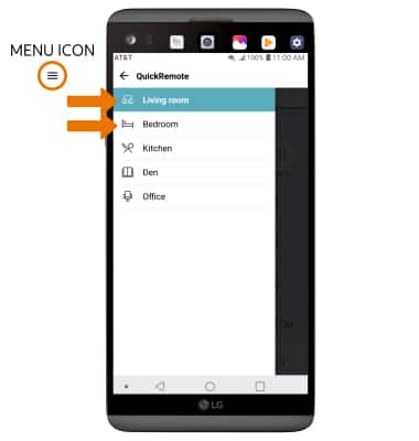 - SWITCH BETWEEN SAVED REMOTES: Select the Menu icon, then select desired remote.