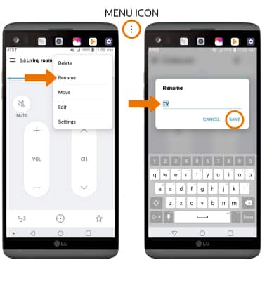 - RENAME A REMOTE: Select the Menu icon, then select Rename. Enter desired name, then select SAVE.