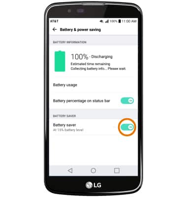 - BATTERY SAVER MODE: Here you can view battery and data usage information. Select the Battery saver switch to the ON position to prolong battery life.