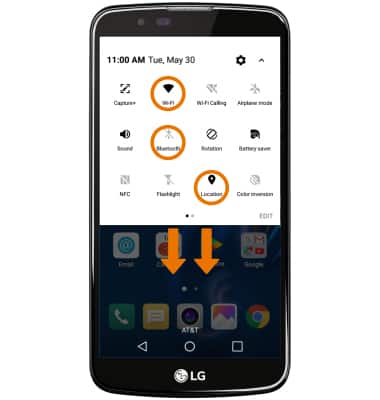 - TURN OFF BLUETOOTH, WI-FI & LOCATION SERVICES: Swipe down from the Notification bar with two fingers, then select the desired icon.