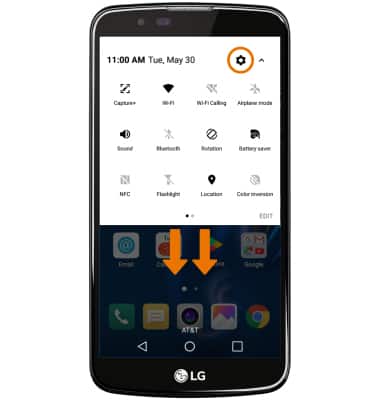 - Swipe down from the Notification bar with two fingers, then select the Settings icon.