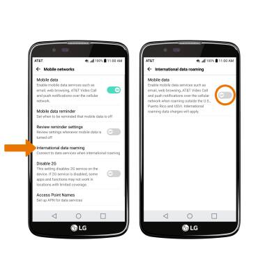 - TURN ON/OFF INTERNATIONAL DATA & MOBILE DATA: Select International data roaming to turn data roaming on or off. Select the Mobile data switch to turn mobile data on or off.
