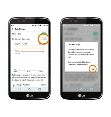 - SET A MONTHLY DATA LIMIT: Select the Limit mobile data usage switch, then select OK.