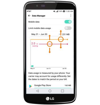 - Drag the Warning marker up or down to set the level at which you will be warned about your monthly data usage. Drag the Limit marker up or down to set the monthly data limit.