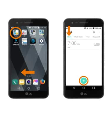 - SET ALARM: From the home screen, swipe left > select the Tools folder > Clock > Alarm tab > Add alarm icon.