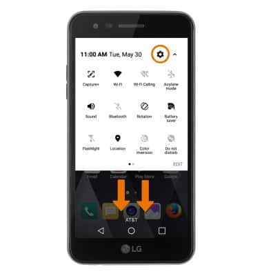 - TURN WI-FI ON OR OFF: Swipe down from the Notification bar with two fingers, then select the Settings icon.