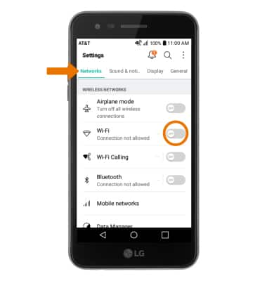 - Select the Networks tab, then select the Wi-Fi switch to turn Wi-Fi on or off.