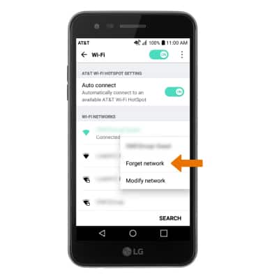 - REMOVE WI-FI NETWORK: Select and hold the desired network name, then select Forget network.