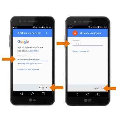 - Enter your Google email, then select NEXT. Enter your Google password, then select NEXT.