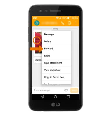 - FORWARD A MESSAGE: Select and hold the desired message, then select Forward.