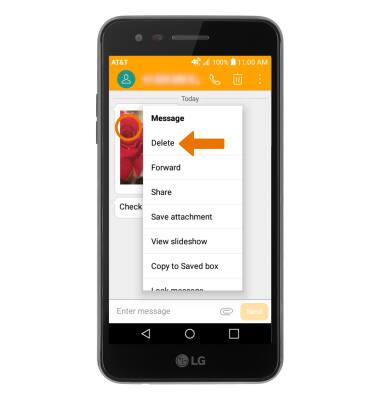 - DELETE A MESSAGE: Select and hold the desired message, then select Delete.