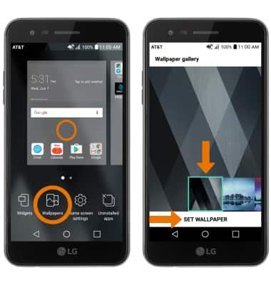 - CHANGE WALLPAPER: Select and hold an empty space on the home screen > Wallpapers > navigate to the desired wallpaper > SET WALLPAPER.