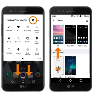 - CHANGE THE DEVICE THEME: Swipe down from the Notification bar with two fingers, then select the Settings icon > Display tab > Theme > desired Theme.