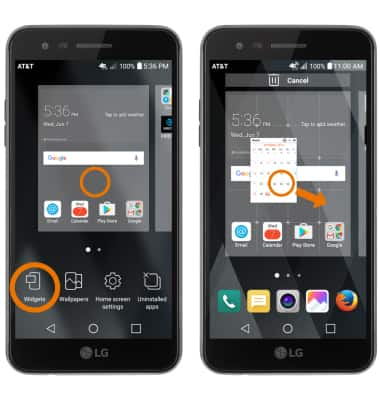 - ADD A WIDGET: Select and hold an empty space on the home screen > Widgets > select and hold the desired widget > drag to the desired location.