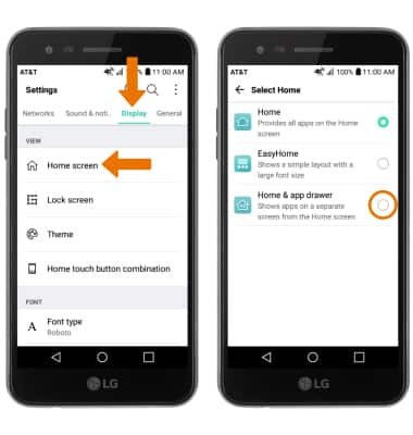 - ENABLE THE APPS TRAY: From the Settings screen, select Display > Home screen > Select Home > Home & app drawer.
