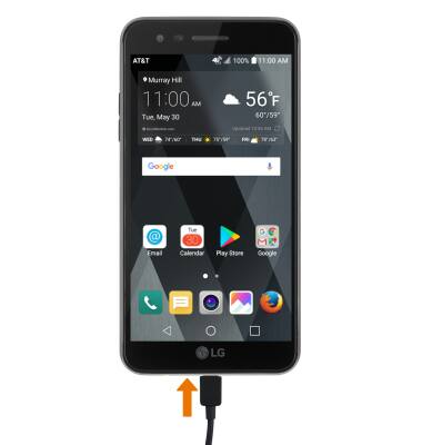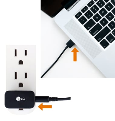 Note: Your device charges quicker using a power outlet than when connected to a laptop or other power source.