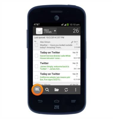 - From the home screen, tap the Email icon.