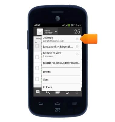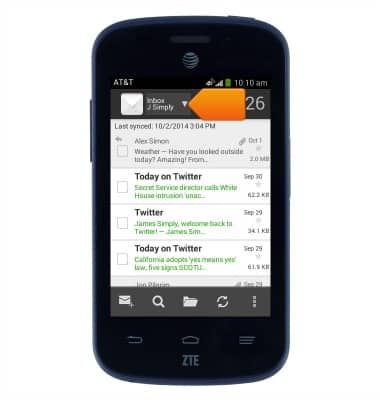 - If multiple email accounts are set up on your device, tap the Inbox drop-down to switch between inboxes.