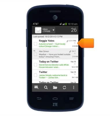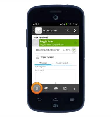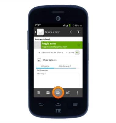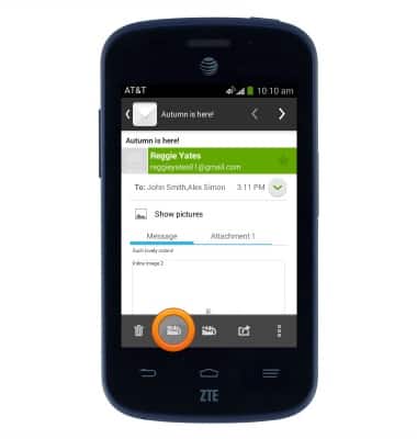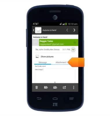 - Tap Attachment to view and download files attached to the email.