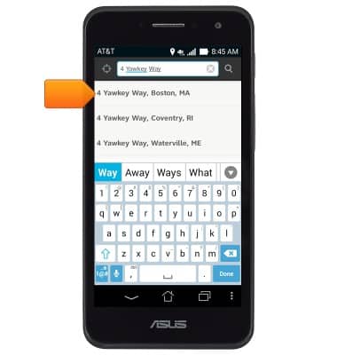 - Enter the desired address or search term, then tap the desired result.
