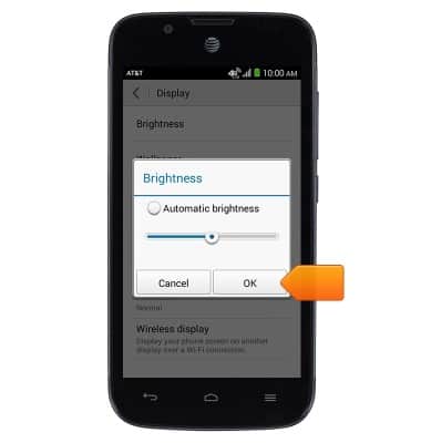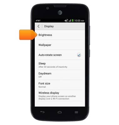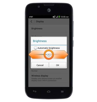 - Touch, then drag the Brightness slider to adjust the display brightness.