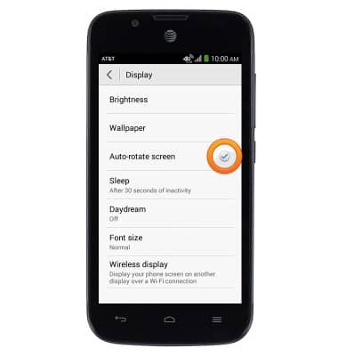 - Tap the Auto-rotate screen tickmark to enable or disable auto-rotation of the display.