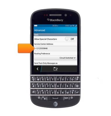 - Tap the Service Center Address field, then enter the desired number.