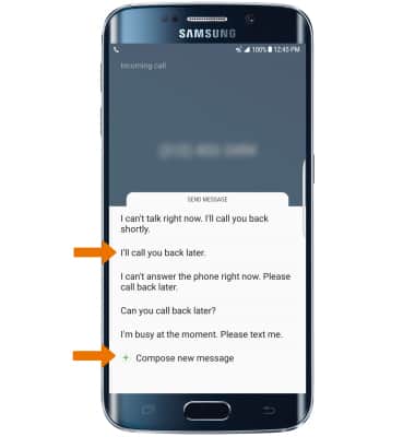 - REJECT A CALL WITH A TEXT MESSAGE: Swipe up from SEND MESSAGE.