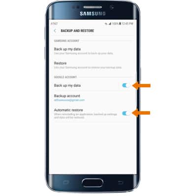 - Make sure that the Back up my data and Automatic restore switches are on.