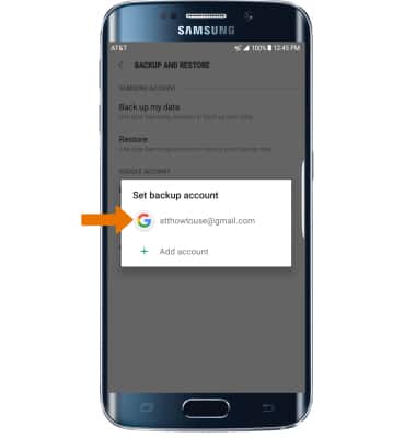 - Select the desired backup account option or select Add account to add a new backup account. When you add your Google account to a device, the data that you previously backed up for that Google account is restored to the device.