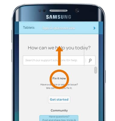 - OPEN AN APP COMPLETELY: The app with the blue line is the active app. Drag the divider in the middle of the screen down to the bottom or up to the top of the screen, depending on which app you want to open completely.