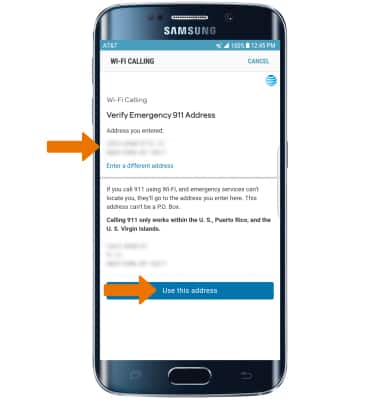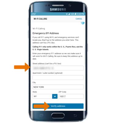 - Read the on-screen prompts and enter your Emergency 911 Address, then select Verify address.