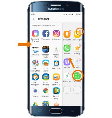 - CUSTOMIZE THE APPS EDGE SCREEN: Select the desired app to add on the left side of the screen. To remove an app, select the Minus icon on the desired app to remove. To rearrange the active apps, select and drag the desired app to the desired location.