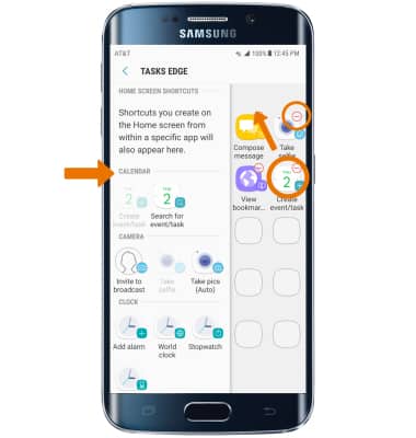 - CUSTOMIZE THE TASKS EDGE TAB: Select the desired task to add on the left side of the screen. To remove a task, select the Minus icon on the desired task to remove. To rearrange the active tasks, select and drag the desired task to the desired location.