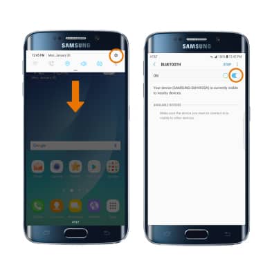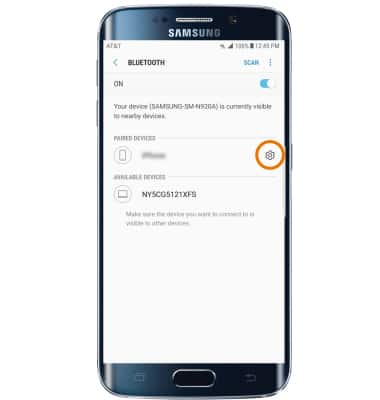 - SCAN FOR DEVICES: Swipe down from the Notification bar, then select the Settings icon. Select Connections > change Bluetooth switch on. Bluetooth will automatically scan for devices.