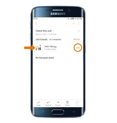 Note: By default, attachments will be saved to the Download folder. To view saved attachments, select the Apps tray > Gallery app > Albums > Download folder.