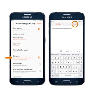 6. ADD/EDIT SIGNATURE: Select Signature > adjust Signature as desired > DONE.