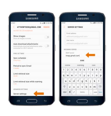 7. CHANGE SERVER SETTINGS: From the desired account, select Server settings > edit Server settings as desired > DONE.