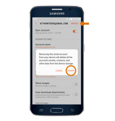 8. REMOVE ACCOUNT: From the desired account, select REMOVE > REMOVE. Confirm.