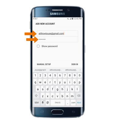 Note: To manually configure email settings (such as server settings and security type), select MANUAL SETUP and enter the required information. You will need your account's server settings. If you don't know this information, please contact your email provider for assistance. If your corporate server requires remote security administration, you will be prompted to set up security features. Select OK to continue.