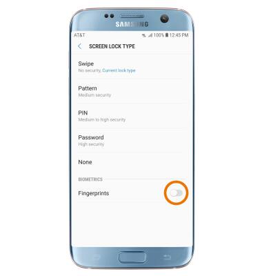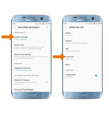 - CHANGE LOCK TYPE: From the Lock screen and security screen, select Screen lock type > enter the backup screen lock > select the desired screen lock type > follow the prompts to complete set up.
