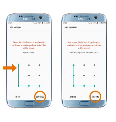 - Draw your pattern, then select CONTINUE. Draw it again, then select CONFIRM.